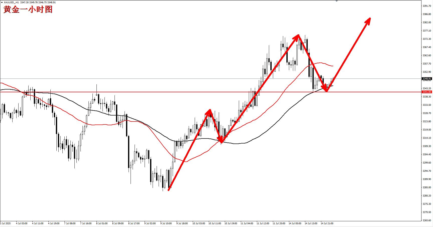 黄金昨晚一直在3345附近徘徊,短线来看,好像要跌,但是实际上又没跌,反复试探3345支撑位之后,目前一小时的走势在3345附近走出了双底的结构企稳攀升,早盘开始筑底走强,双底的成立也就意味着调整结束!早盘3348一线我们直接多!