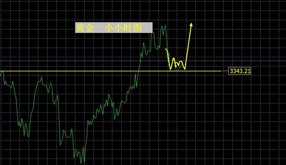 简单讲,今天短期多空分界线是在3340这里,在此区域之上,短线突破3351可以直接做多看涨!