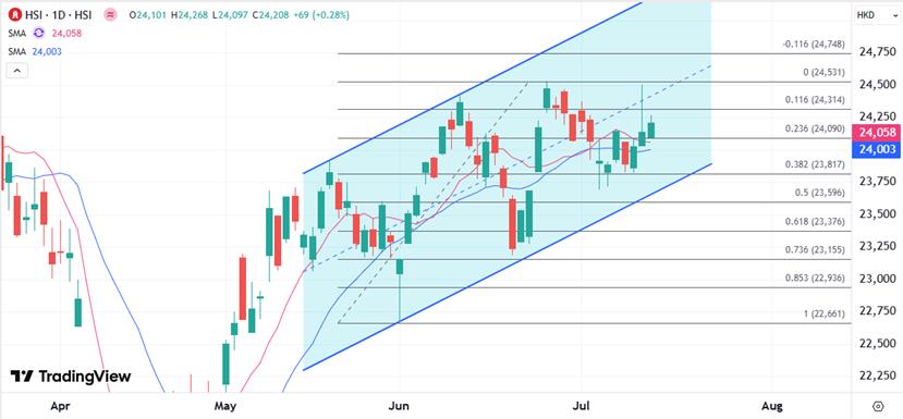 XM港股:在近期区间高位被拒后,24000关口仍值得关注