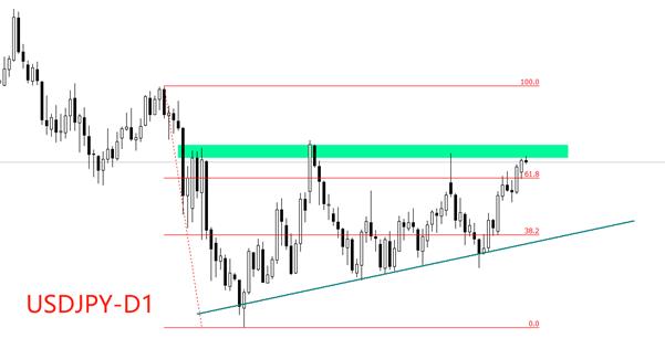 走势结构角度看,日线级别,USDJPY处于中长期空头趋势,但近期有筑底迹象。最新波段为上涨,最高点为147.88点,已经达到4月份以来的震荡区间上限,未来有遇阻回落可能。另外,最新市价在3月28至4月22日的显著下跌波段的0.618分位附近,同样提示抛压可能较重。如果USDJPY翻越当前阻力位(小概率),则意味着空头趋势有可能转变为多头趋势。如果遇阻回落(大概率),下方支撑在途中上升的中短期趋势线附近。