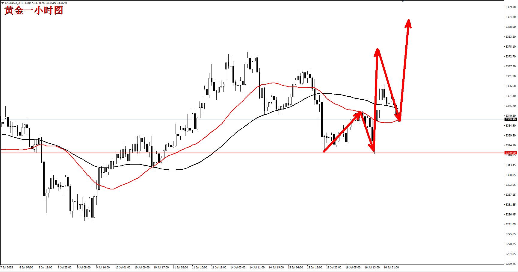以目前一小时盘面来看,昨晚冲高回落,但是没能进一步跌到更低的点位,虽然昨晚只是一个闹乌龙事件,但已经改变了短期黄金的运行格局,由空转多,那今天早盘等回踩企稳我们开始做多,下方关键位置还是3320一线,这个是多空重要的分水岭,在3320之上,回踩企稳可以直接多!