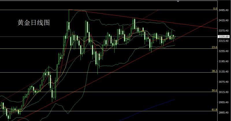 昨日黄金市场早盘开盘在3348.4的位置后行情先拉升给出3352.4的位置后行情强势回落,日线最低给到了3309.2的位置后行情受到本轮上行趋势线支撑强势拉升,日线最终收线在了3339的位置后行情以一根下影线极长的锤头形态收线,而这样的形态收尾后,今日3325多止损3319,目标看3340和3350-3352,破位的话看3357-3362压力。