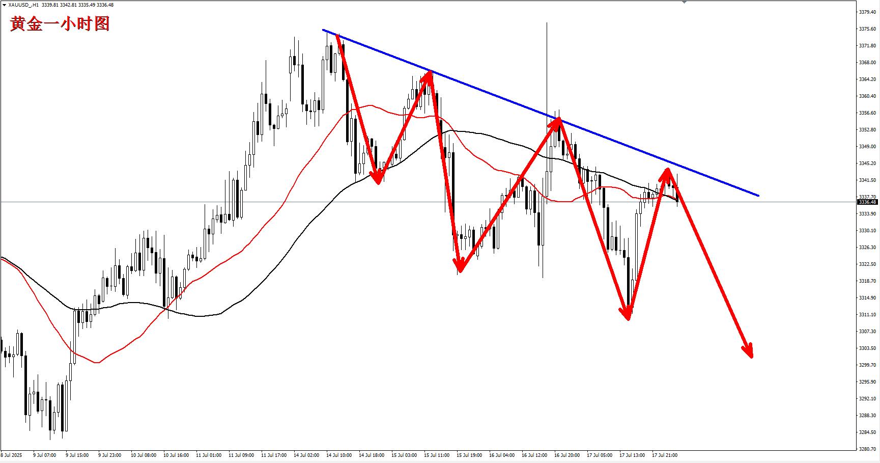 黄金3342空,止损3352,目标3320