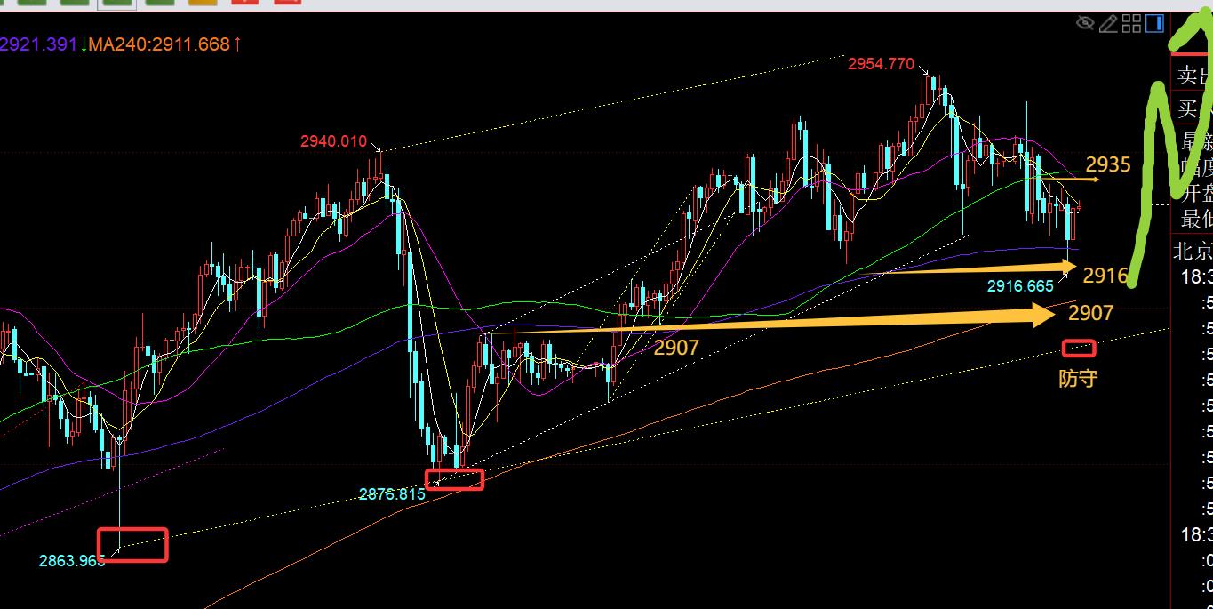 第一,黄金方面:昨日走势几乎和前日类似,虽欧盘强势走高,但美盘并未二次延续上拉,美盘前后出现的回测力度依然偏大,试探了日内涨幅618分割支撑,因此反而向下打压了一波,最低2925一线,也正是研报给的一张图,通道下轨处,企稳后探底拉升一波;