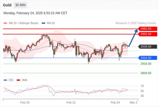 在2924.00之上,看涨,目标价位为2955.00,然后为2962.00。