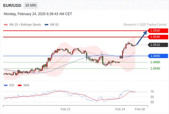以上内容就是关于“【XM外汇市场分析】:2025年2月24日欧洲开市前,每日技术分析”的全部内容,是由XM外汇小编认真整理编辑的,希望对你的交易有所帮助!感谢支持!