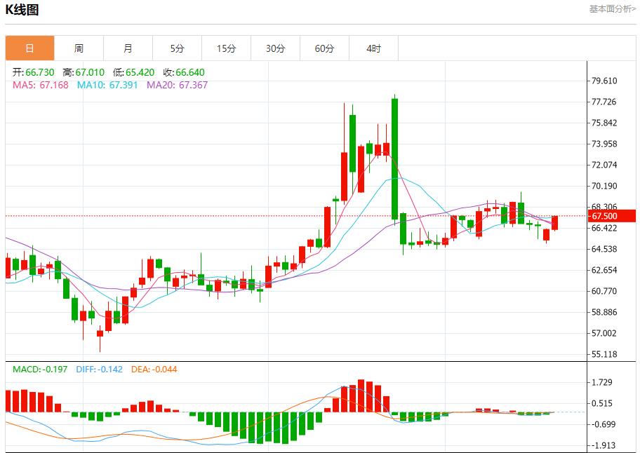 原油市场:截止北京时间20:23,美油上涨,现报67.490,涨幅1.92%。纽市盘前,(原油)在最后一盘交易中收盘强劲上涨,受到试图收复之前损失的支撑,价格重新测试了小看涨通道的支撑位,该支撑位在短期基础上限制了前一交易的价格,并触及EMA50的阻力位,这增加了技术压力,可能会限制这种上涨的继续。