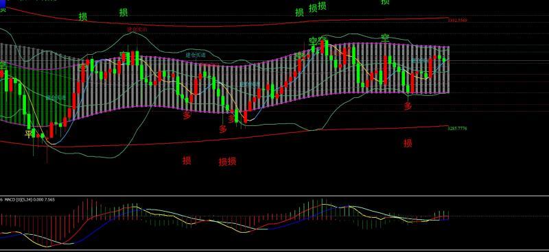周五黄金继续探底回升,不过晚间靠近61压制下行,早盘最低回落到了45,基本也是15个点,从上周一开始就一直走的是阳阳循环格局,涨跌不延续,价格始终没有跑出四小时的上下线,就是周三的探底破高也顺间熄火出现大跌,周四的破位下行也是顺间收复,所以我们先找出破位之前的区间,再找破位后的遇期的目标,而现在来看日图的上线与四小时加速线共振压制于3394-95一线,下方支撑四小时的下线与小时图的加速线又共振于3315-18区域,周五是刺破中轴在小时图下线支撑上扬,上方靠近四小时上轨压制回落,所以可以得出一个结论,大区间本周3318-3395一线,而日内支撑还是在下线3340这里,不过早盘是45上涨,而近期二次给到支撑位基本是会虚破才能真正上扬,所以有效支撑在30分钟加速线3334一线,上方压制3365-70区域,突破76看向94-95一线,因此终合得出结论如下:震荡高抛低吸。