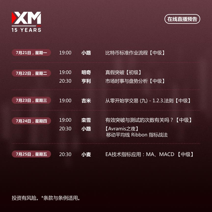 以上内容就是关于“【XM外汇官网】:中文在线直播讲座 本周预告”的全部内容,是由XM外汇小编认真整理编辑的,希望对你的交易有所帮助!感谢支持!
