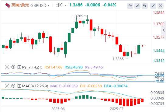 美元指数:截止发稿,美元指数徘徊在97.87投资者正在对8月1日最后期限之前重新出现的贸易紧张局势和普遍谨慎的市场情绪做出反应。尽管最近美国经济数据基本稳健,但美元仍感受到了围绕美国总统唐纳德·特朗普政府加大关税威胁的持续不确定性以及美联储降息政治压力不断增加的热度。美元受到上周强劲的美国经济数据的支持,这降低了美联储(Fed)立即降息的可能性。技术面上,美元指数正试图收于支撑位98.00–98.20下方。如果这一尝试成功,美元指数将走向下一个支撑位,即位于96.70–96.90区间。