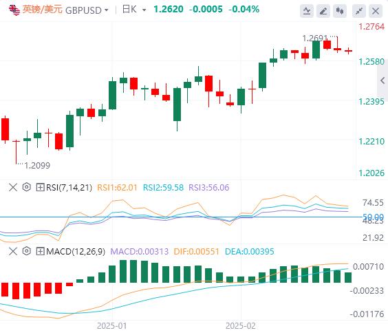 英镑/美元在周一早盘上涨至1.2700后失去牵引力,当天收盘小幅走低。该货币对在周二欧洲早盘时段稳定在1.2600上方。