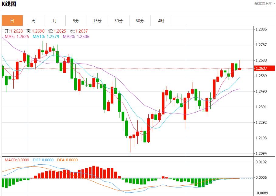 英镑/美元:截止北京时间21:21,英镑/美元上涨,现报1.2638,涨幅0.06%。纽市盘前,GBPUSD价格在今天开盘时明显上涨,目前达到1.2700美元的关口,等待更多积极的交易朝着主要预期目标1.2765美元的方向发展,该目标由EMA50支撑。
