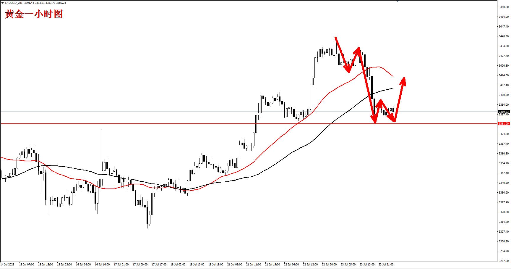 昨晚黄金直线下跌,跌幅五十多美金,最主要的原因还是因为欧美关税的影响,昨晚欧美的贸易谈判确定了15%同等关税,导致金价下跌,那么今天黄金已经走出底部结构,明确的说已经止跌,而且上涨的趋势并没有被破坏,今天保持看多!