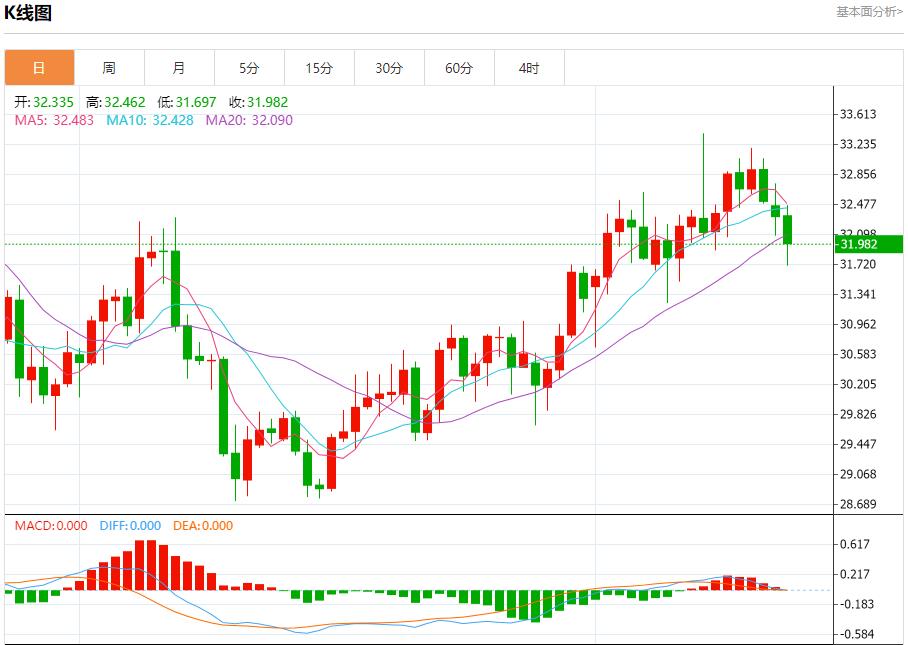 现货白银:截止北京时间21:21,现货白银下跌,现报31.992,跌幅1.04%。纽市盘前,白银价格测试了图表上出现的看涨通道的支撑位,注意到价格从那里开始反弹,受到随机利好的推动,暗示着在即将到来的交易中复苏,并在盘中实现上涨。