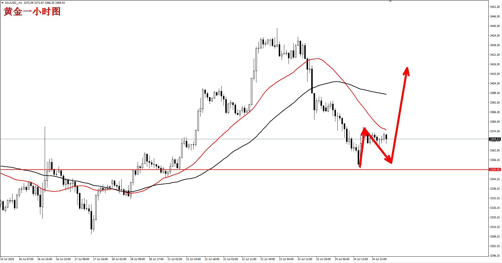 一小时级别的走势支撑位在3350一线,昨晚凌晨金价已经在震荡筑底,今天周五有进一步拉升的可能,所以今天我们操盘回踩顺势跟进抓好关键点位3350附近,有回踩我们就多!