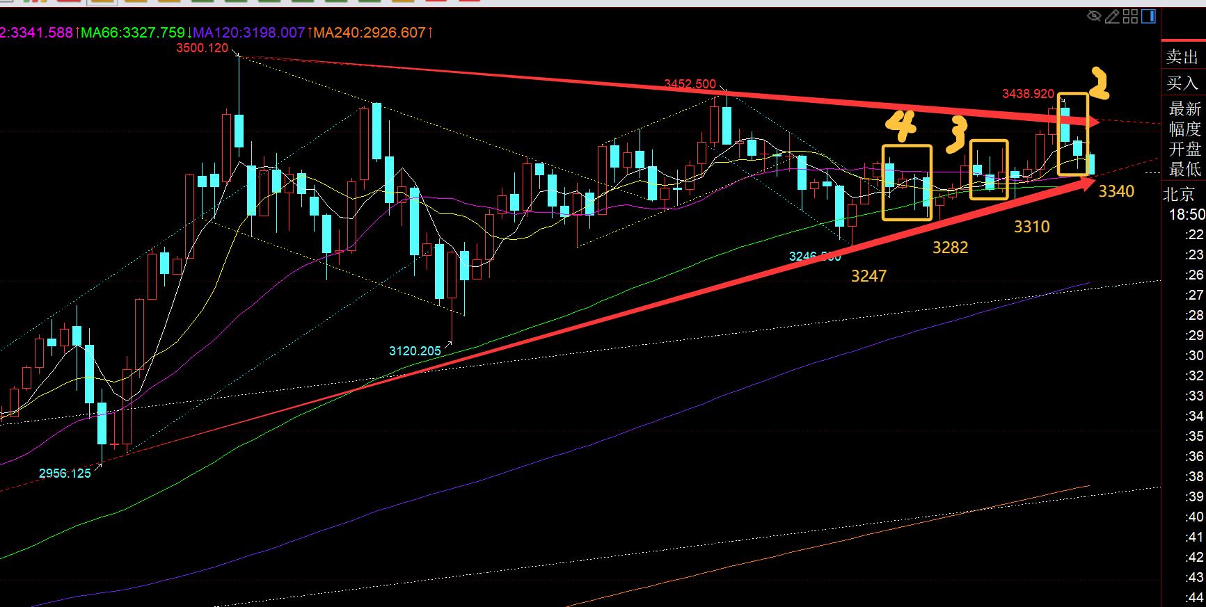 郑氏点银:黄金再次逼近大收敛三角下轨,3340上下能否起飞