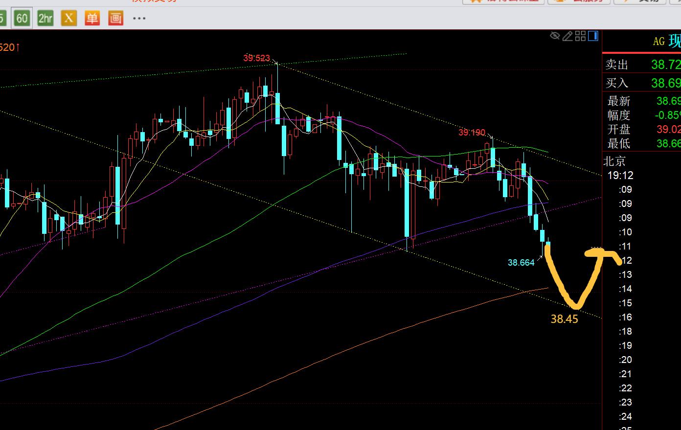 第二,白银方面:研报指出38.7短期通道下轨支撑触及继续看涨,美盘刚好打到,就立马稳定拉升,最高拉升39.1,也有一定利润空间,比黄金给了些;