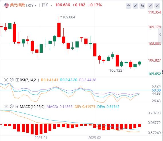 周三,在美国总统特朗普发表最新言论后,投资者对经济强劲程度和关税前景进行了评估。美元指数小幅回升,脱离了近期触及的11周低点,截至目前,美元报价106.68。