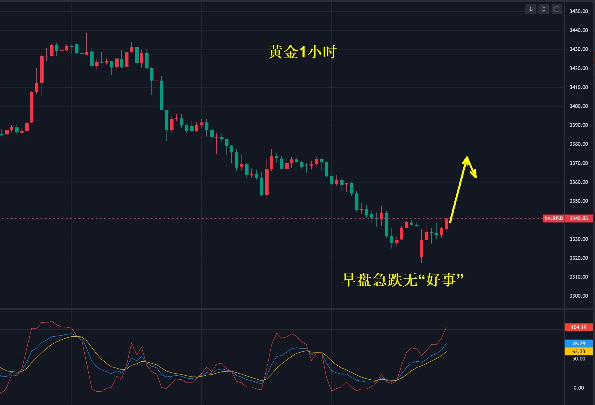 今天,我认为早上急涨之后突破了3339美元的位置,可以在3340-35的区域开仓多,防守在早上低点3320下就行,向上可以看到3360-65,甚至关注3370一线。记住,早上的急跌是对上周五空头的能量释放,不是今天空头的延续,另提示:重仓,不止损,锁仓者勿借鉴!一家之言。