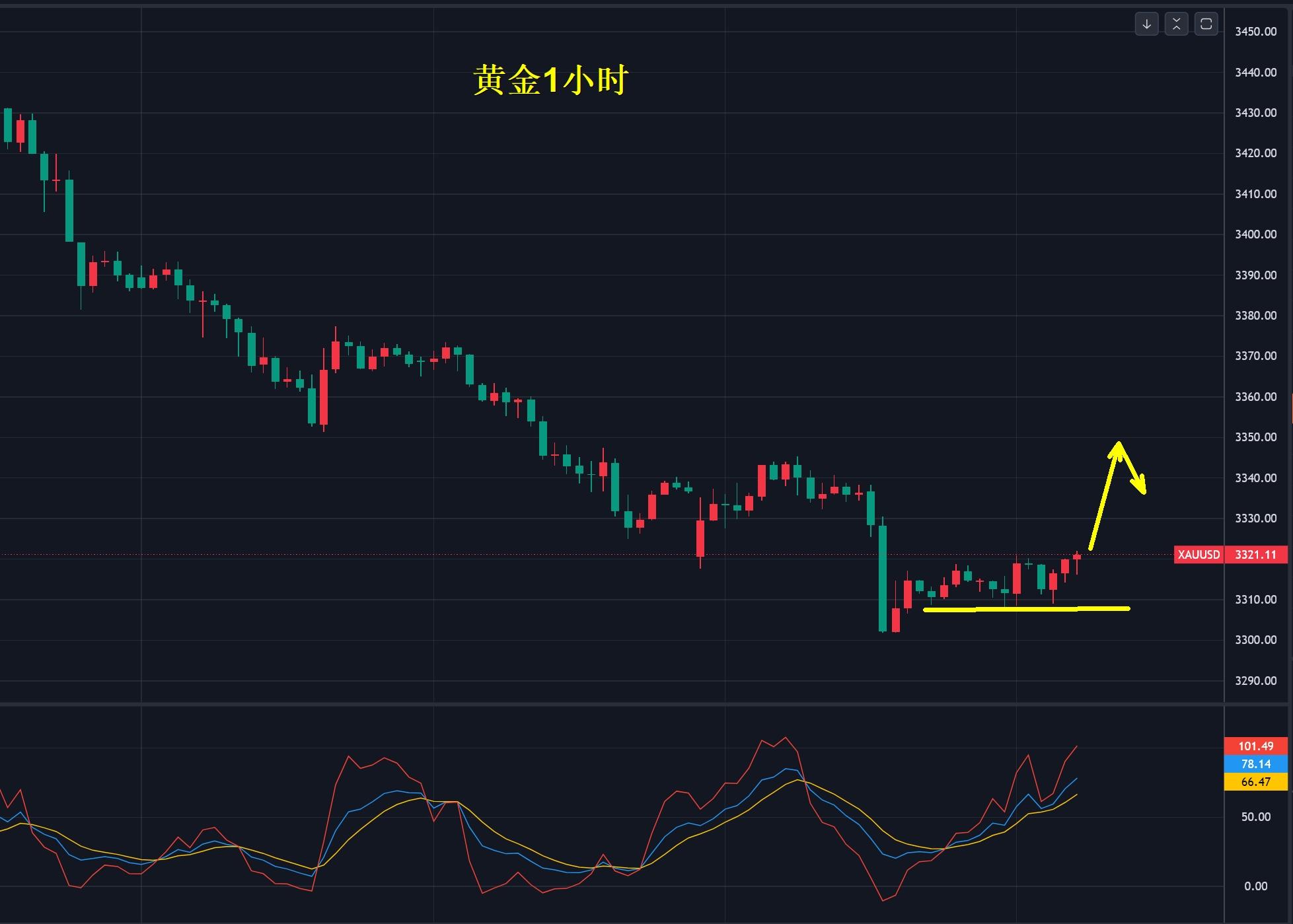 所以,今天我认为暂时以3305作为多空分界点,在此位置上方目前没有合适的位置空,也不打算亚欧盘去空,只有破位3305反弹3307-10的区域再考虑空,向上关注3328-3335-3338一线。亚欧盘暂时我打算观望,美盘前价格稳步向上到时候再多,破位3305反弹空,其他位置观望。另提示:重仓,不设损,锁仓勿借鉴。一家之言!