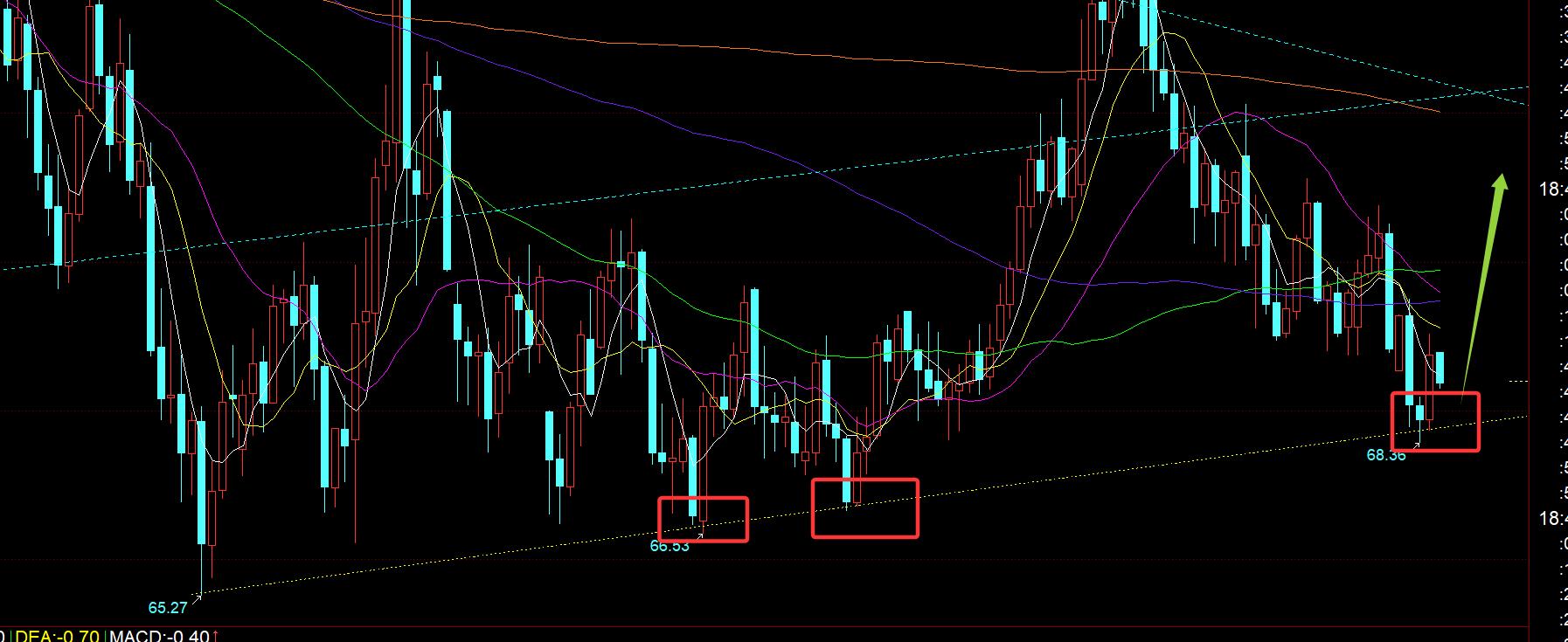 第三,原油方面:日线趋势支撑点68.5企稳后,昨日终于迎来一波上攻,抵达70一线第一目标;