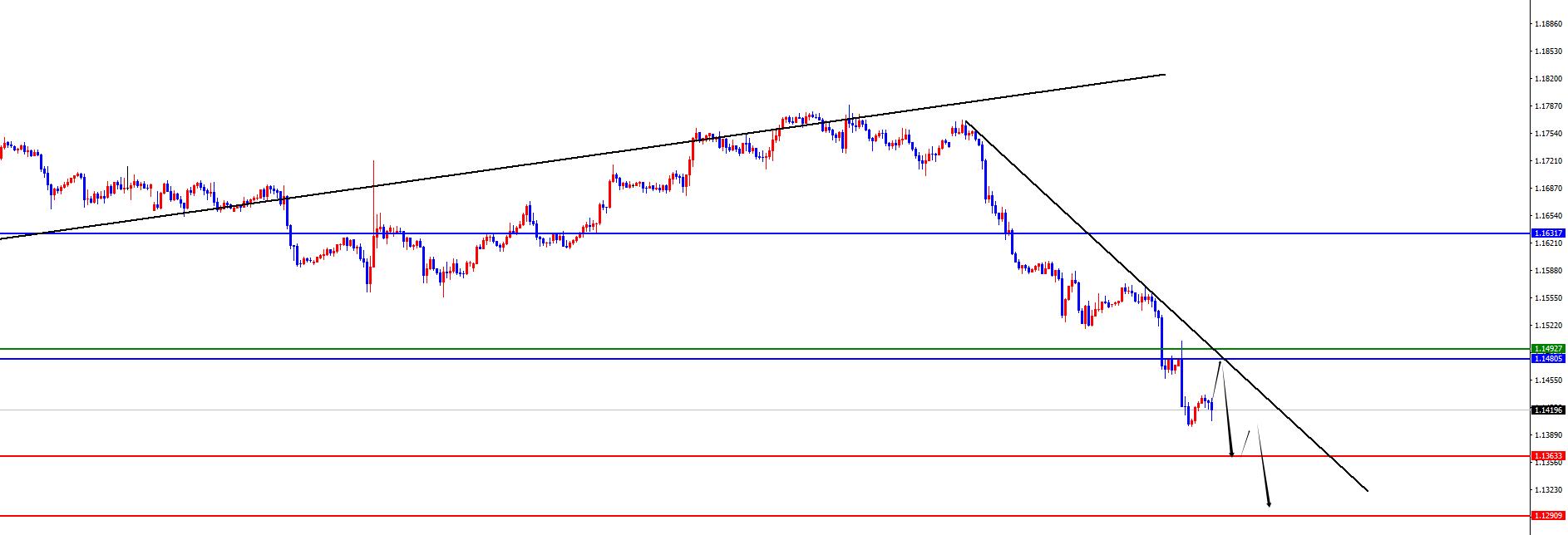 欧美1.1480-90区间空,防守40点,目标1.1370-1.1290