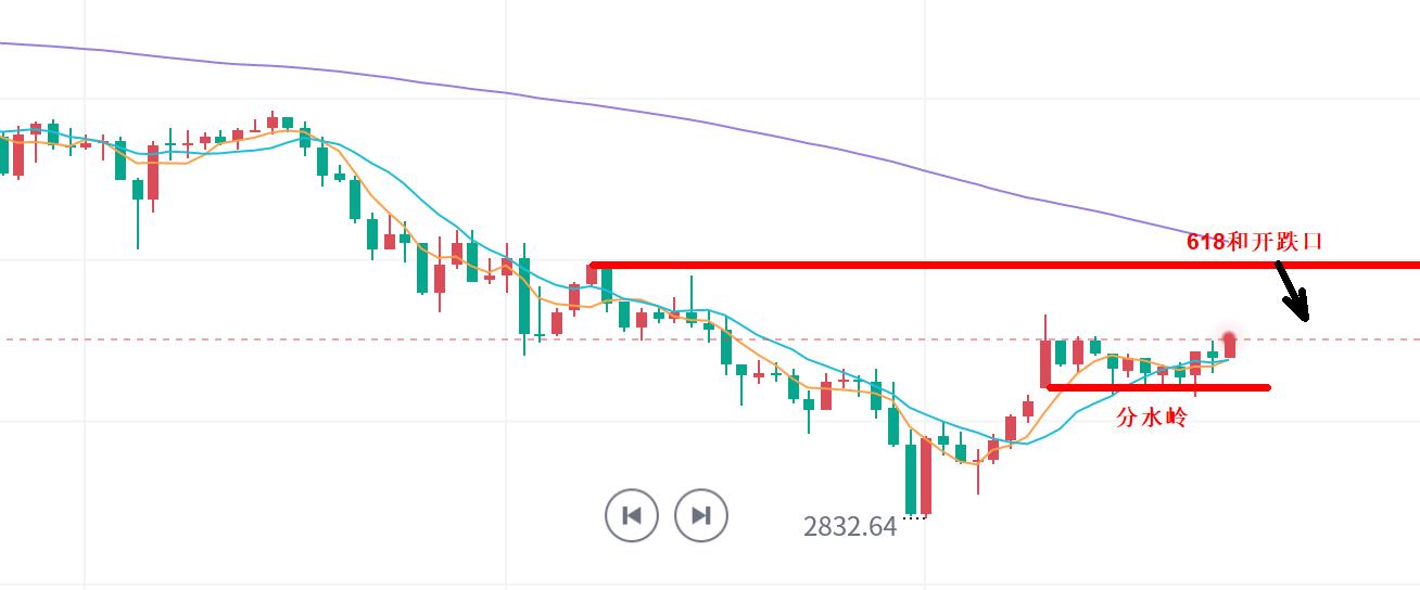 关注刚才说的618位置2884-5一线可以操作,回撤关注日内382位置,可以继续卡上升,其他位置就看戏。