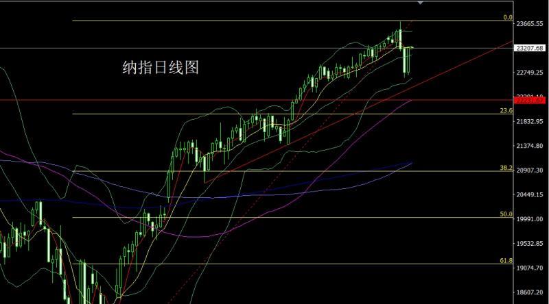 昨日纳指市场早盘开盘在22755.56的位置后行情先回落给出22700.89的位置后行情强势震荡拉升,日线最高触及到了23232.85的位置后行情以一根下影线稍长的饱和大阳线收线,而这样的形态收尾后今日23050多止损22990,目标看23250和23300和23400附近离场准备空。
