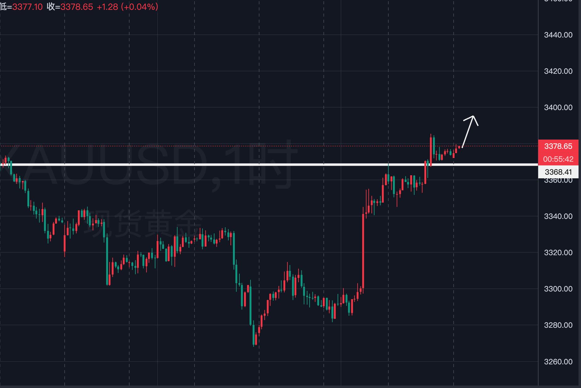 自非农数据公布之后,金价强势拉升重回3300美元,昨天再破新高到3385,这种走法的行情不用猜顶,就是低点抬高,高点破位,然后回踩确认顶底转换或者凌晨低点干多就行,人不能有太多顾虑,要多研究怎么做方案,而不总臆想。
