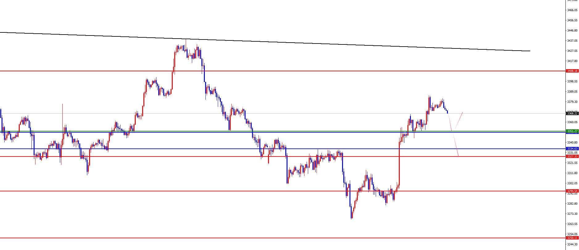 黄金关注3350-51区间得失,此位置得失决定短线方向