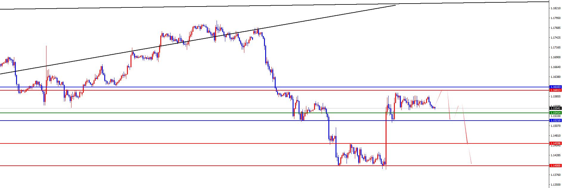 欧美1.1600-10区间空,防守40点,目标1.1540-1.1520(破位后看延续)