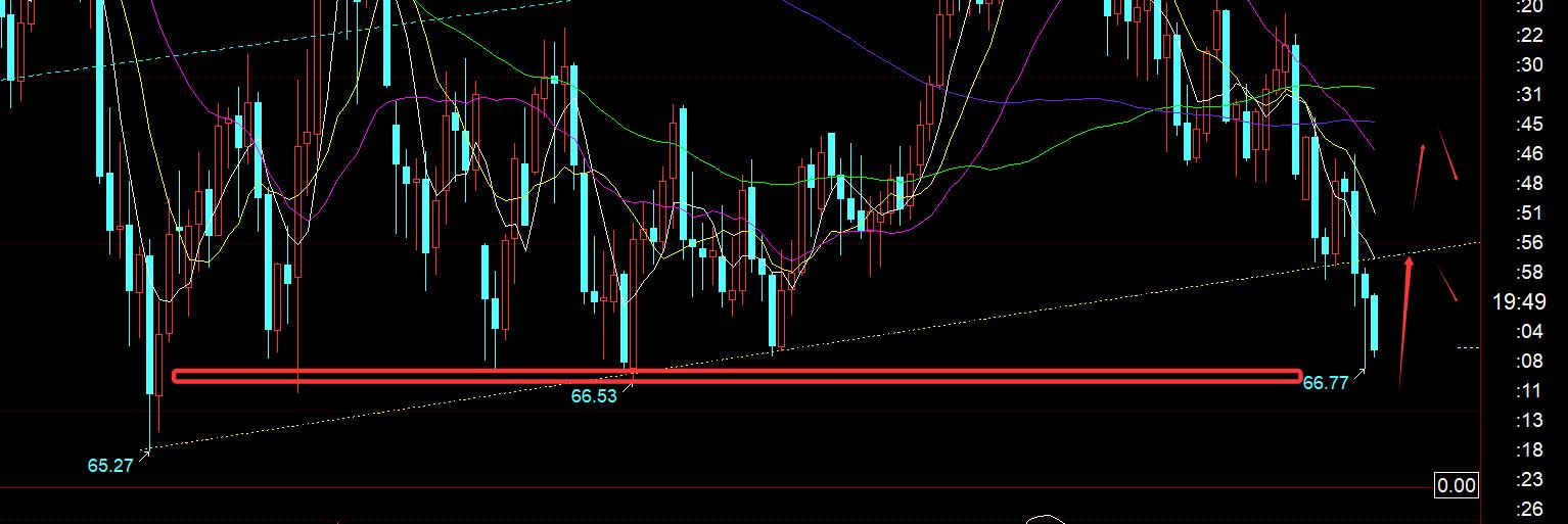 原油方面:昨日收报一根长下影K,今日则以昨日低点66.7作为一定风水岭,守住它,则认为有概率存在一波超跌反弹修正,并且从图中看,67-65这个范围,属于前期的密集支撑带,这几日就看能否坚守而继续回归震荡;
