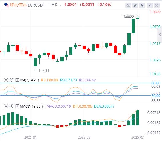 市场普遍预计欧洲央行将在3月政策会议后将关键利率下调25个基点(bps)。在政策声明发布和修订宏观经济预测后,欧洲央行行长克里斯蒂娜·拉加德(ChristineLagarde)将在格林威治标准时间13:45开始的新闻发布会上就政策前景发表讲话并回答问题。欧元/美元周三连续第三天延续令人印象深刻的涨势,并在周四早些时候继续走高。该货币对上一次交易于四个月来的最高水平,略高于1.0800。欧盟统计局将在欧洲交易时段发布1月零售销售数据。