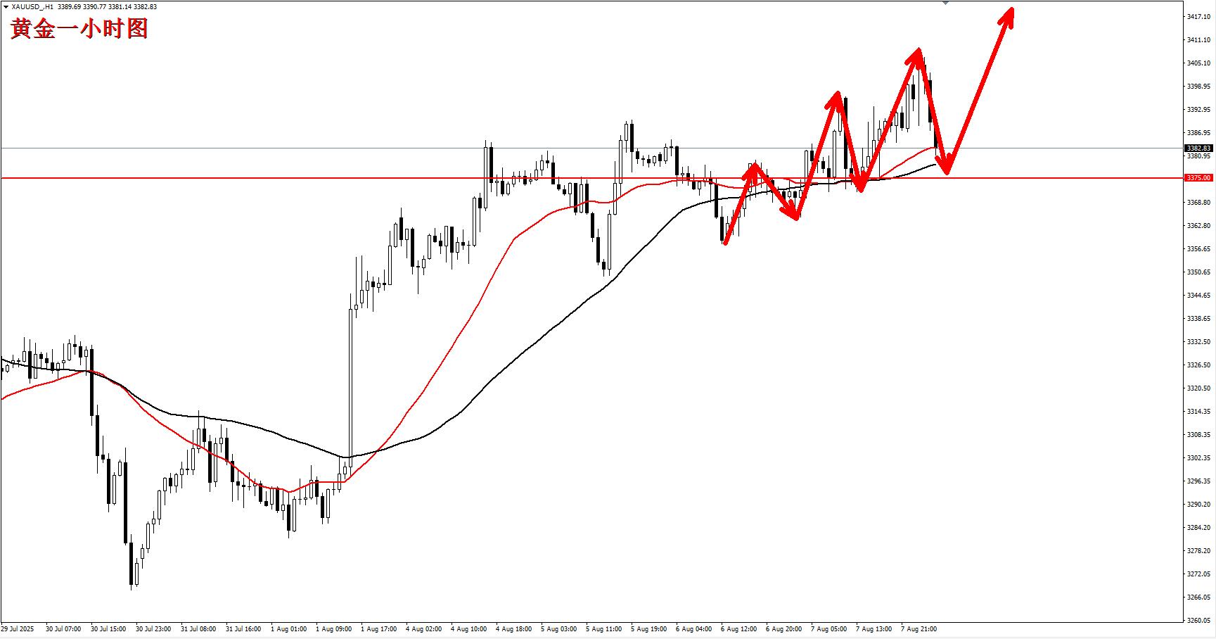 黄金3375多,止损3365,目标3400