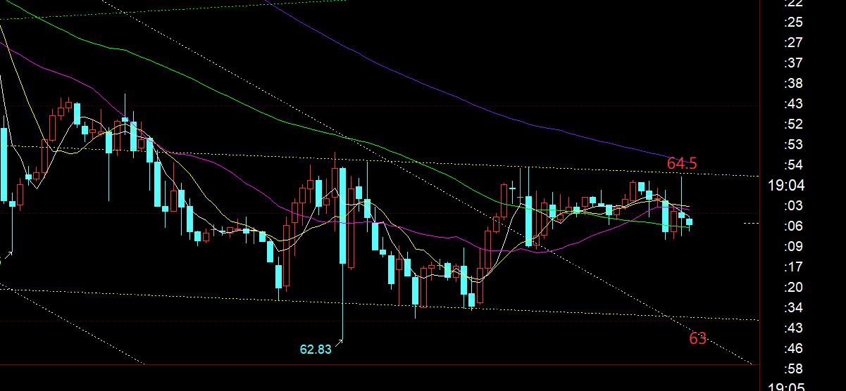 原油方面:短期还是处于弱势,只不过前几日的下滑通道有所突破了,这几日就要谨慎出现超跌反弹,也去修复下macd背离;今晚关注64.5阻力,支撑63,靠近63企稳尝试反弹,或者突破站稳64.5之后,回踩确认此处去跟随反弹;若能出现超跌反弹,上方首要压力位66;