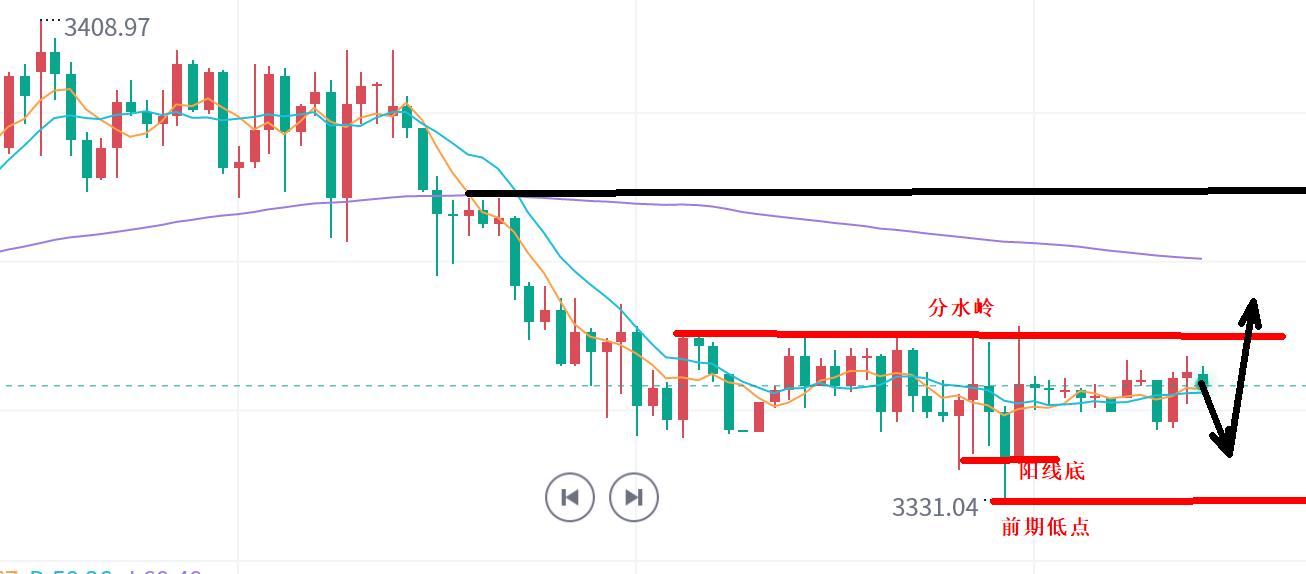 5,下方分水岭3336,欧盘破,美盘继续跌。