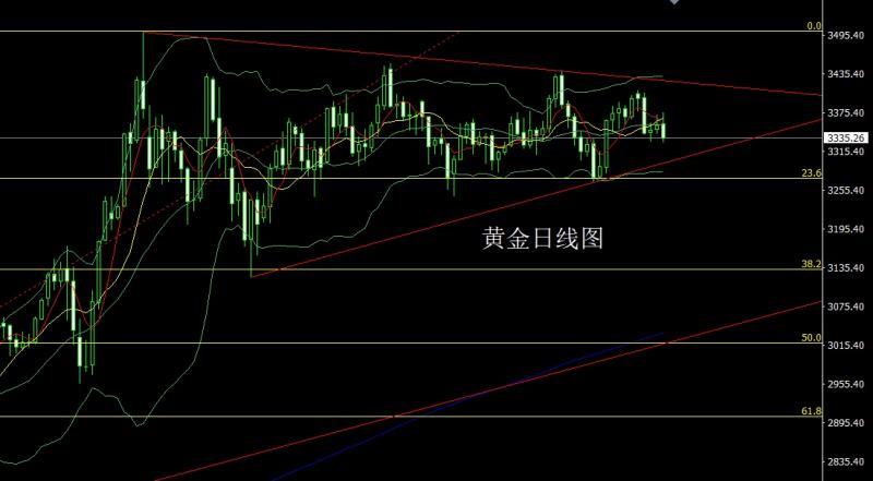 昨日黄金市场早盘开盘在3357.6的位置后行情先拉升,日线最高触及到了3375.3的位置后行情强势震荡回落,给出3341.2的位置后行情欧盘时段强势拉升,给出3366.6的位置后行情美盘时段受到基本面压力震荡回落,日线最低给到了3329.6的位置后行情低位震荡,日线最终收线在了3335.2的位置后,日线以一根上影线很长的中阴线收线,而这样的形态收尾后,今日的行情在技术上有回落压力,点位上,今日先拉升3350空保守3352空止损3356,下方目标看3335和3329,跌破的话看3321和3316和3308和3300-3292离场反手准备波段性多单进场。