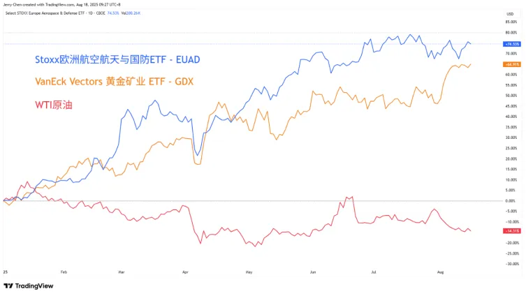 军工股、黄金和能源市场或对地缘局势的进展较为敏感,下图显示相关标的的全年涨跌幅对比。对能源市场来说,若特朗普放松对俄罗斯原油出口制裁且联手俄罗斯在阿拉斯加进行天然气开发,原油和天然气价格恐持续承压。