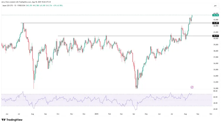 日经指数连续两周大幅上扬且接连刷新历史新高。美日贸易和关税谈判的尘埃落定扫清了围绕在日本股市上的不确定性,利好于出口型企业(如丰田等车企)的盈利前景,全球投资者再次回归。