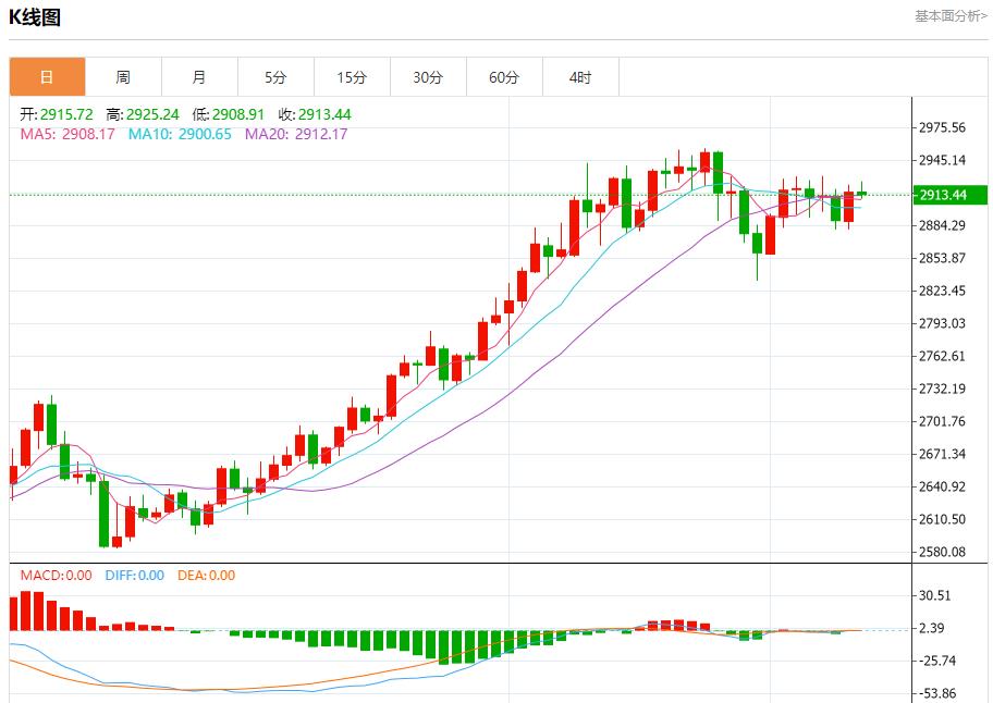 现货黄金:截止北京时间20:20,现货黄金下跌,现报2913.57,跌幅0.07%。纽市盘前,金价继续在2920.00美元附近波动,等待突破这一水平,以确认牛市的延续,并在未来一段时间内获得更多收益,注意随机指标试图获得积极的动力,以支持实现所需突破的机会。