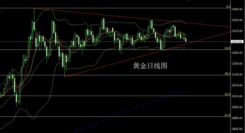 昨日黄金市场延续回落压力,早盘开盘在3333.3的位置后行情先回落给出3325.8的位置后行情强势拉升,日线最高触及到了3345.5的位置后行情尾盘回落,日线最低给到了3314.5的位置后行情整理,日线最终收线在了3315.8的位置后行情以一根上影线很长的中阴线收线,而这样的形态收尾后,今日的行情回踩后依旧有回落压力,点位上,前日3354的空减仓后止损跟进在3346,今日3328空保守3331空止损3334下方目标看3314和3306和3302,跌破的话下方主要看3292和3283-3280支撑离场多。