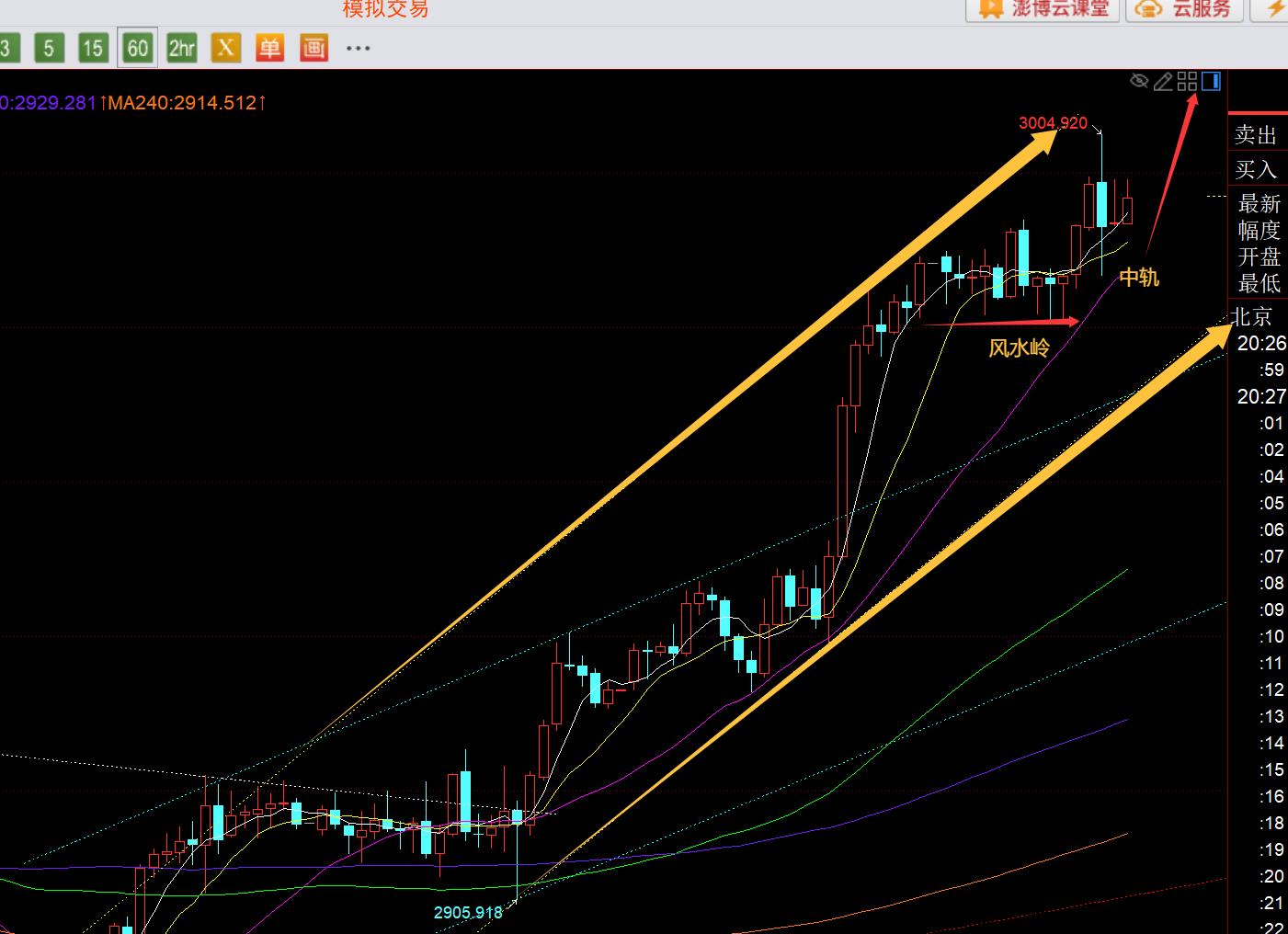 第三,黄金小时线级别:亚盘压制2990一线整理,但回调力度太小,最低才2980,连凌晨低点支撑2976都未触及,因此想要跟随这波强势拉升,就只能欧盘期间直接干;当欧盘多次出现几根长下影K,稳住于2980,就是一个跟随机会,当然可能会担忧短线的刺破扫荡行为,那么可通过小波段来进行,放开防守,同时放大目标,一旦启动拉升,防守随时上移保护,这种办法可缓解持仓压力,也比较灵活,发现不对可随时调仓,也可以规避短线的刺破;对于今晚来讲,只要维持于中轨之上运行,则强势看涨不变,往上通道阻力至少是3010之上,2980日内低点作为一定风水岭,依托中轨继续逢低看涨;
