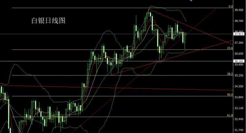 白银市场昨日开盘在37.381的位置后行情小幅拉升给出37.427的位置后行情强势回落,日线最低给到了36.943的日线低点后行情强势拉升,到尾盘日线最高触及到了37.933的位置后行情整理,日线最终收线在了37.894的位置后,日线以一根下影线极长的大阳线收线,而这样的形态收尾后,今日37.5多止损37.3,目标看37.9和38.2和38.4.