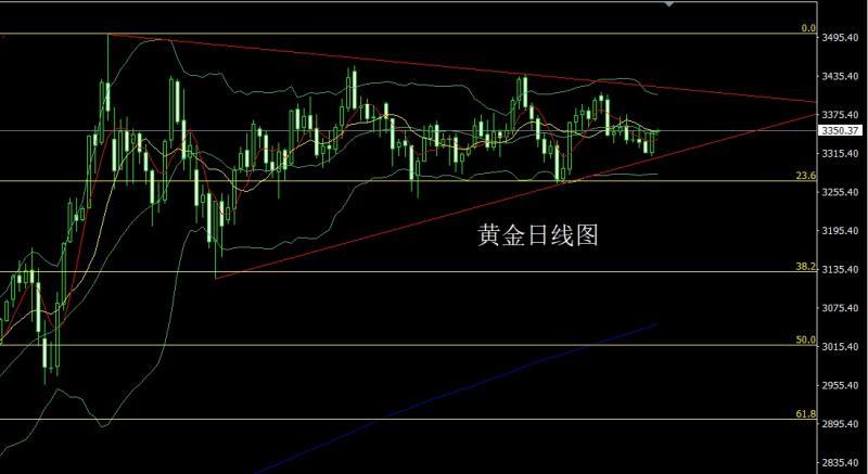 昨日黄金市场早盘开盘在3316的位置后行情先回落,日线最低给到了3311.2的位置后行情强势震荡拉升,到美盘日线最高触及到了3350.4的位置后行情整理,日线最终收线在了3348.3的位置后,日线以一根上下影线等长的大阳线收线,而这样的形态收尾后,日线阳包阴,今日先回落给出3325多保守3323多止损3319,目标看3343和3352,破位看3360和3367-3372.