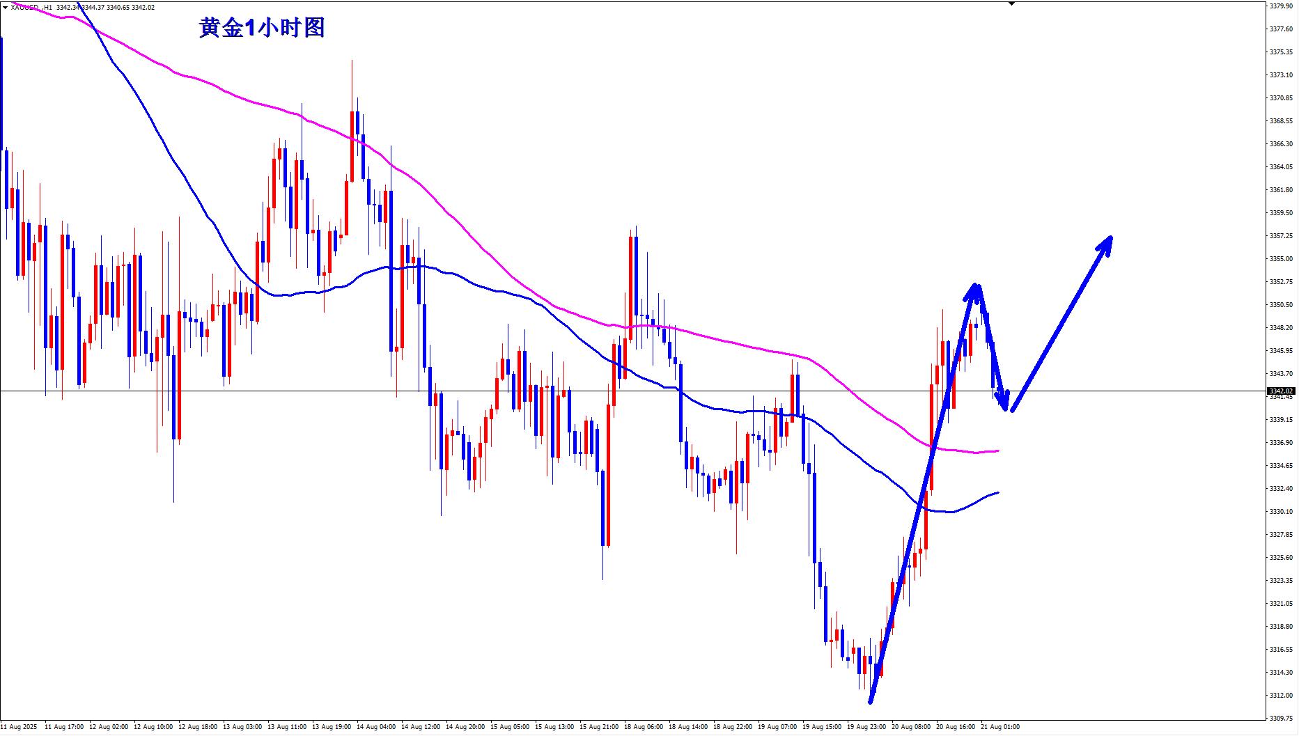 黄金昨天最终深V反转,美联储会议纪要之后,对于美联储9月份降息的预期增加。短期也对黄金形成了支撑,黄金多头强势,早盘现价3342顺势做多。
