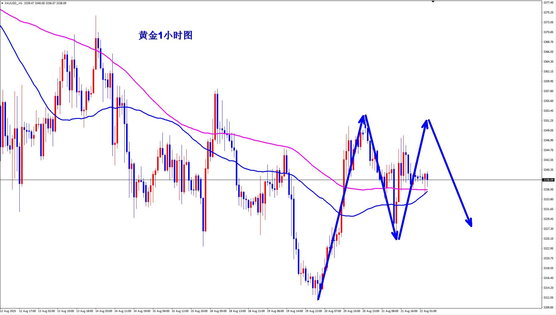 黄金1小时还是继续震荡,上方阻力再3350上方,下方支撑之3310-3320区域,那么早盘现在反弹高位承压3350上方还是可以继续先空,震荡行情,现在在高位,那么有没有有效突破区间震荡之前,高位就还是先空。