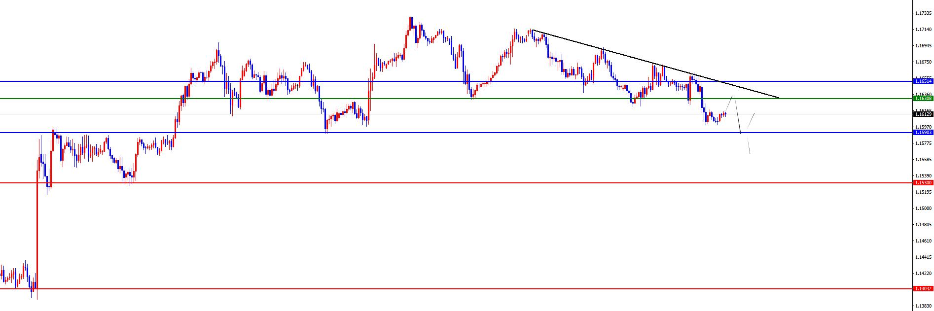 欧美1.1635-45区间空,防守40点,目标1.1590,下破后看1.1530
