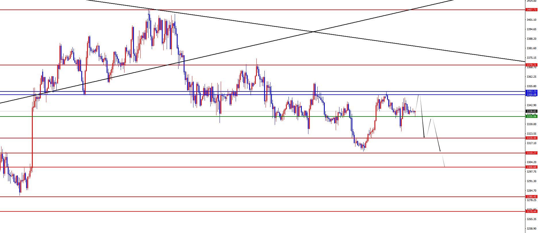黄金3350-52区域空,防守10美金,目标3335-3320-3310-3280