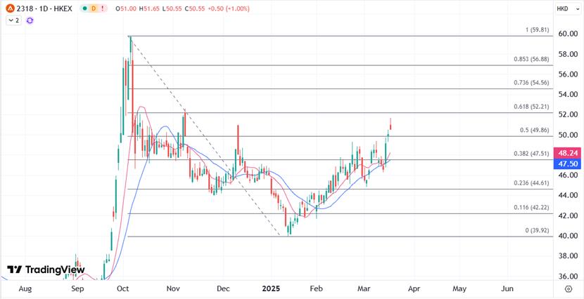 中国平安(02318.HK)股价跟随金融股和内险股上扬,部分淡化了平安银行业绩的利空,扩大了自1月中旬低位以来的上涨,日内继续高开暂时录得三连涨xn--xm-6d1dw86k.com,盘中刷新自去年11月8日以来的高位,当前留意前期高位在52港元上方的阻力。
