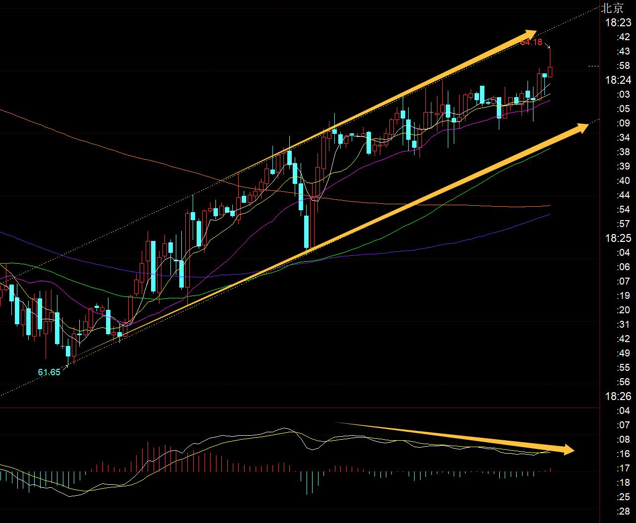 原油方面:这几日慢悠悠的震荡一路上行,日线站上10均线,短期是是处于一波反弹中,也可能是之前反复提及的超跌反弹;只是小时线级别,macd长时间的顶背离,还是会有所担心冲高回落一波,都不太好出手,稳妥就是等修复macd至零轴之下,再去介入企稳反弹,支撑63一线;